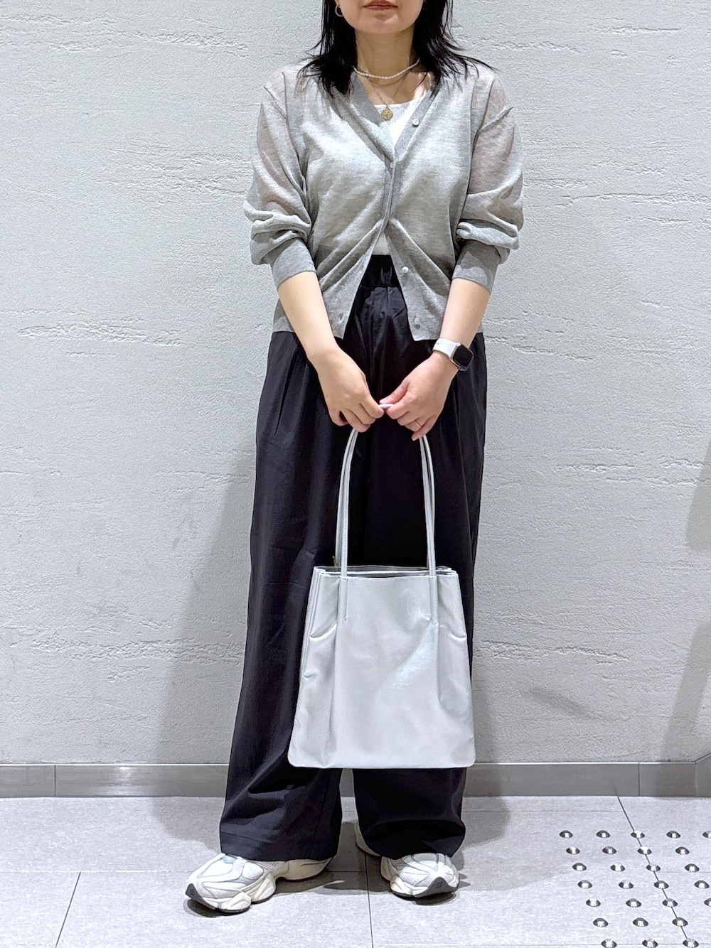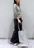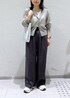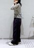 グレーのワントーンコーデ。 トップスとしても羽織としても使えるので、一枚持っておくと便利なアイテムです。