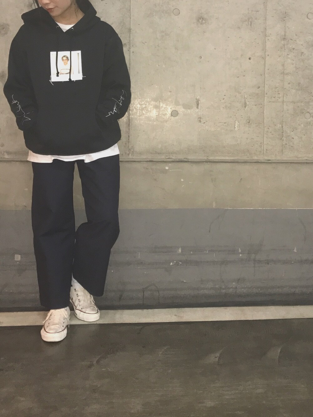 小西 幸のパーカー「X-girl x Larry Clark BIG SWEAT PULLOVER」を使ったコーディネート