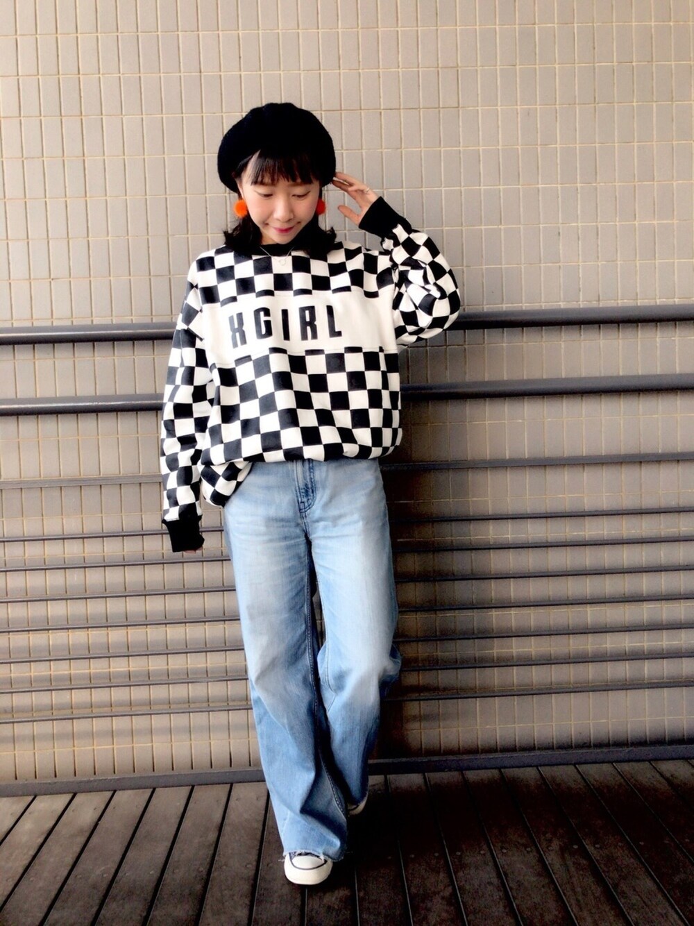 小西 幸のワンピース「CHECKERED SWEAT BIG DRESS」を使ったコーディネート
