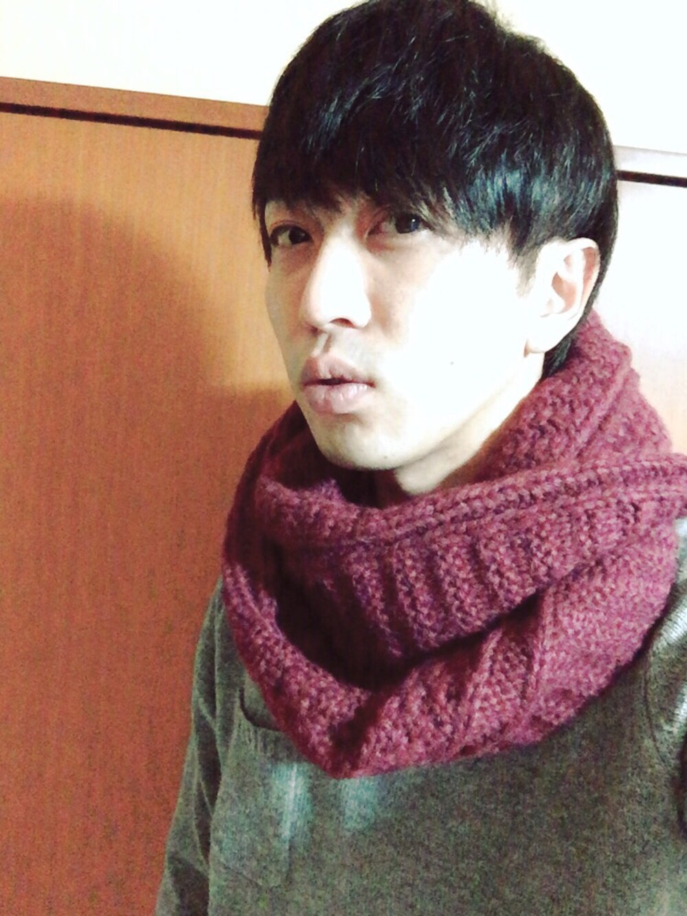 この色の組み合わせ好き。 スヌードは女性用の雑貨屋さんで購入しました。