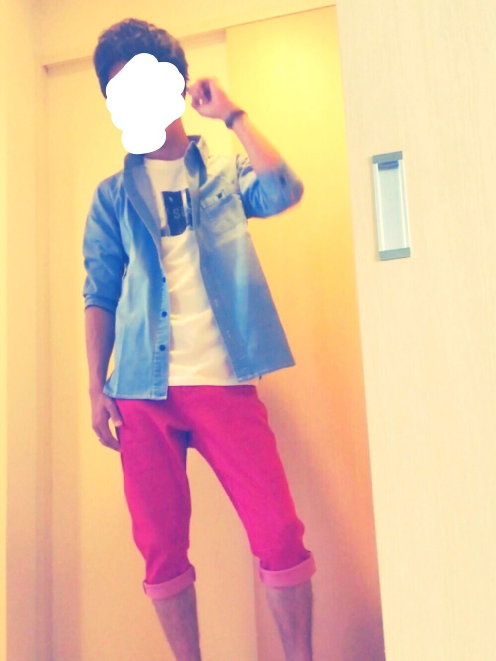初めて投稿してみます 肩幅狭いのが悩みです😨 意外とパンツの赤は汎用性が高くて気に入りました😌