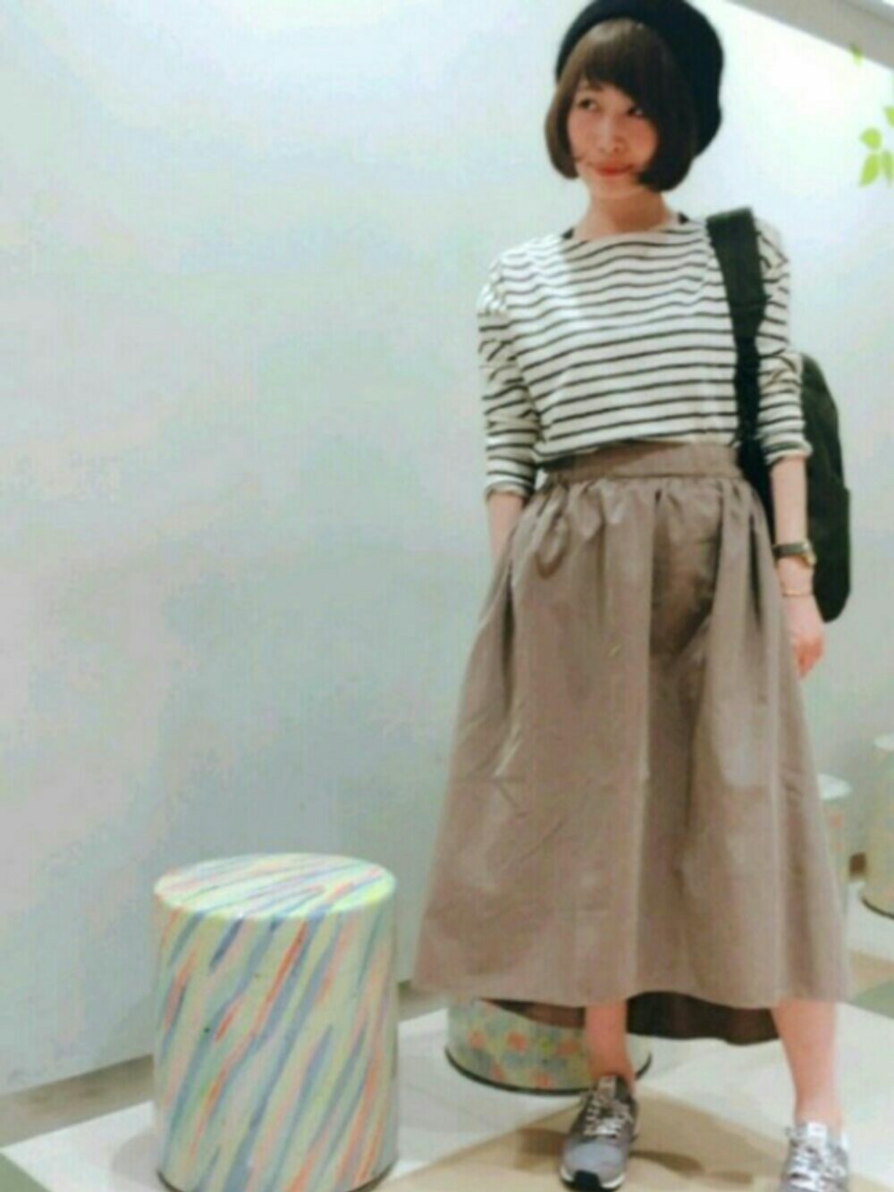 sakuraのTシャツ/カットソー「ボーダーボーダーボートネックプルオーバー」を使ったコーディネート