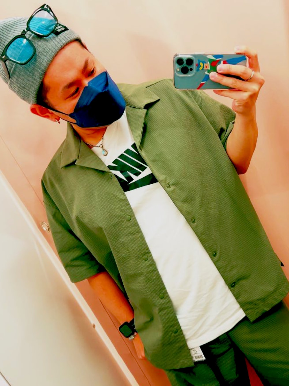 @ワークマン試着室 w カーキのセットアップがかわいい過ぎて このままご購入👌 ワークマン激アツなのでぜひ1度行ってみて!