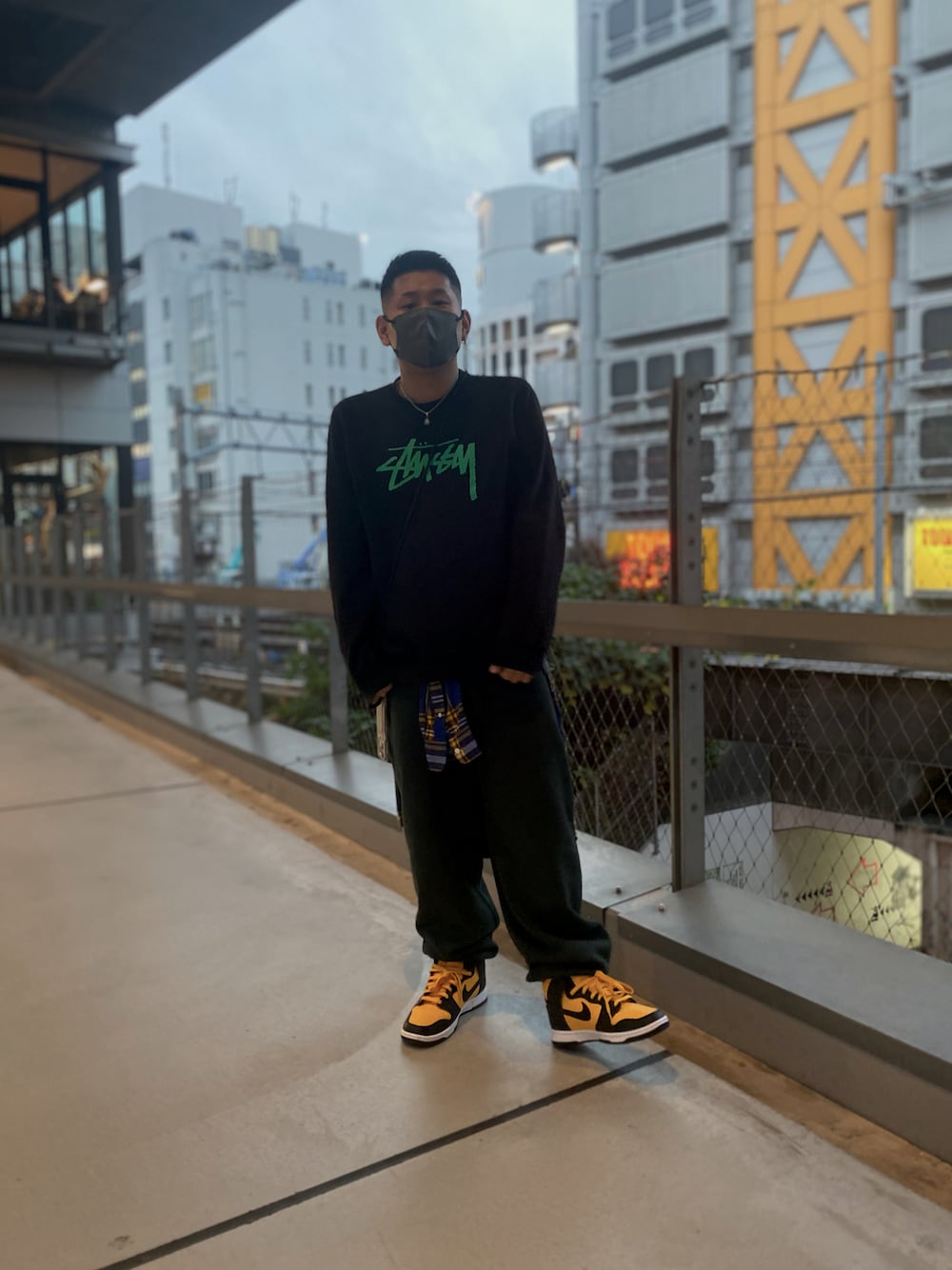 渋谷の宮下公園で映え活!笑 前に載せたGUのグリーンスウェットにNIKEのイエローハイカットで✌️
