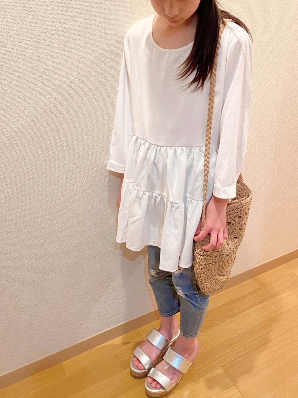 ko_ai_to🎶のサンダル「3ベルトコルクウエッジサンダル」を使ったコーディネート