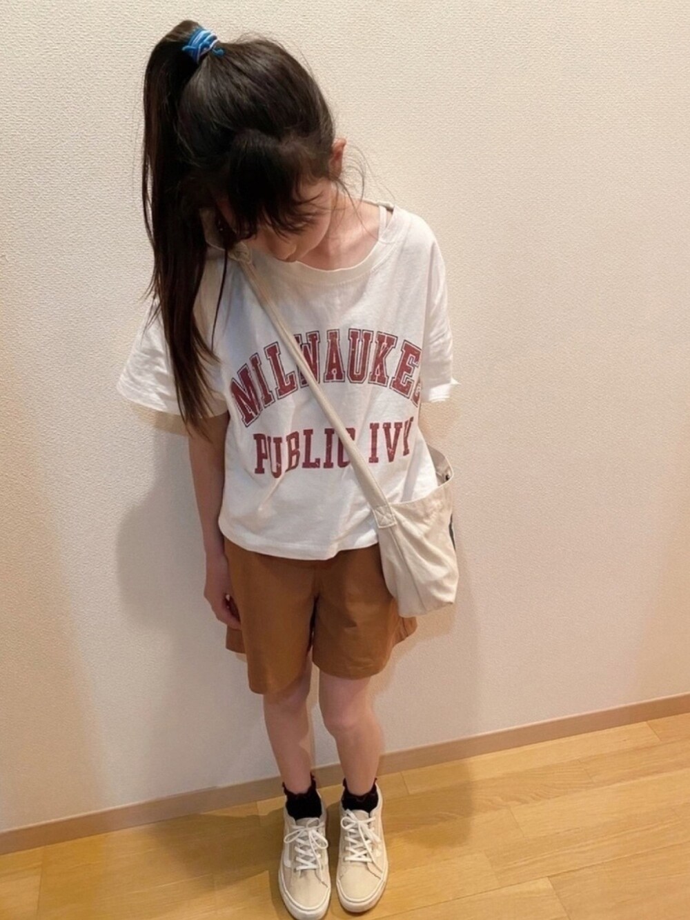 いつも見て下さりありがとうございます😊 いいね、フォロー、セーブ(୨୧•͈ᴗ•͈)◞ᵗʱᵃᵑᵏઽ*♡ 嬉しいです。 #長女コーデ ロゴT可愛い♡