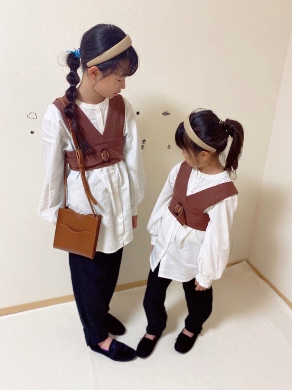 いつも見て下さりありがとうございます😊 いいね、フォロー、セーブ(୨୧•͈ᴗ•͈)◞ᵗʱᵃᵑᵏઽ*♡ 嬉しい限りです #リンクコーデ 子供が気にいって買った全身ブランシェスコーデ ニットベストのベルトが気にいった様子💕 短時間の運動会行ってきまーす🙌 年少のぼくちゃんは、今でも私と別れる時は なくので、かなり心配😵😵😵