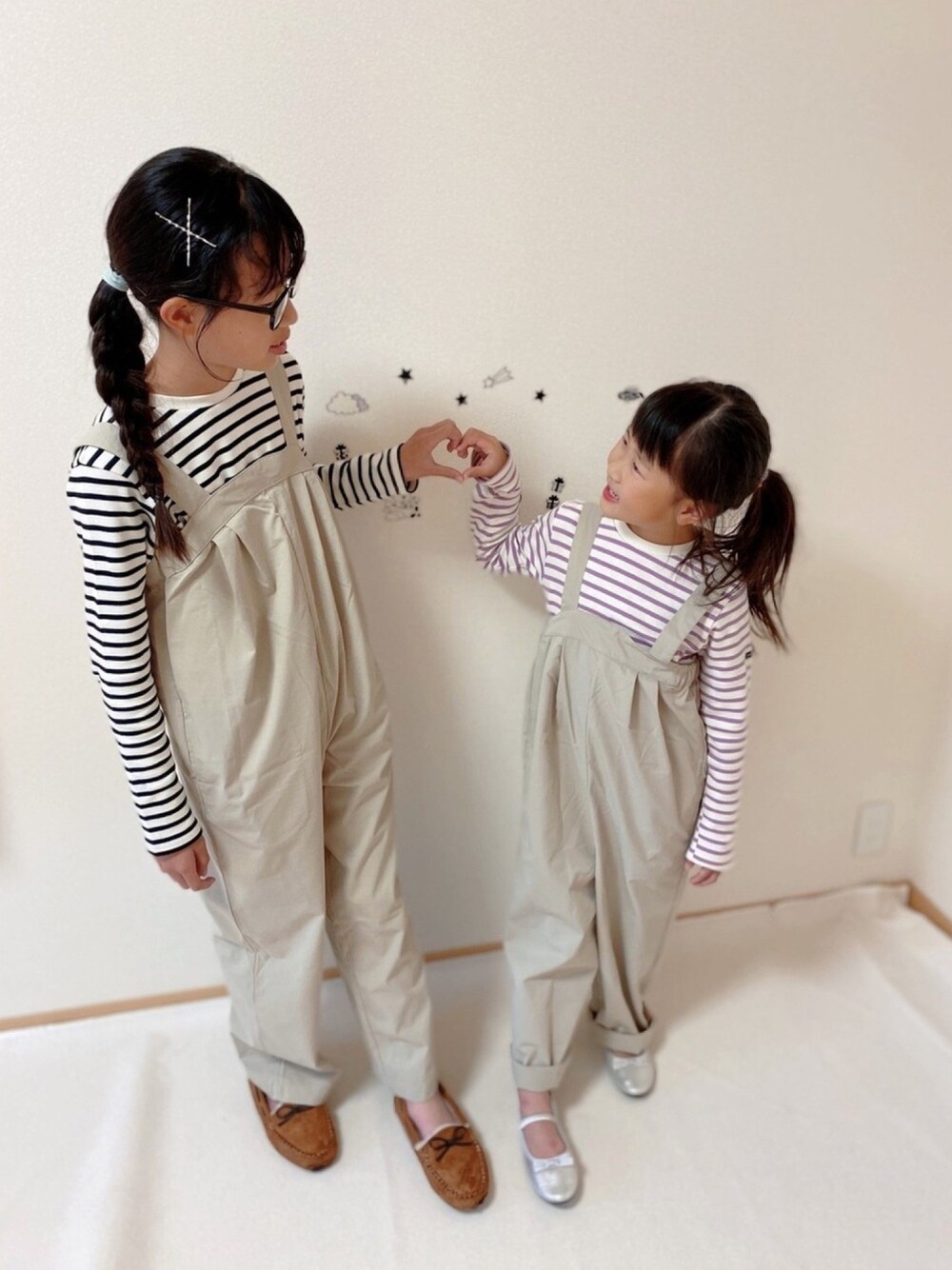 リセマインのプレゼントキャンペーンで姉妹でいただいたボーダーギャザーロンTとサロンペット 💓🙈💕💭 ・ リセマインは、petit mainの姉妹ブランド🙌 長女は、petit mainがサイズが小さくて着用できなくなってきていので、petit mainと同じ服を姉妹で着れるのは嬉しい 😌🙏 ・