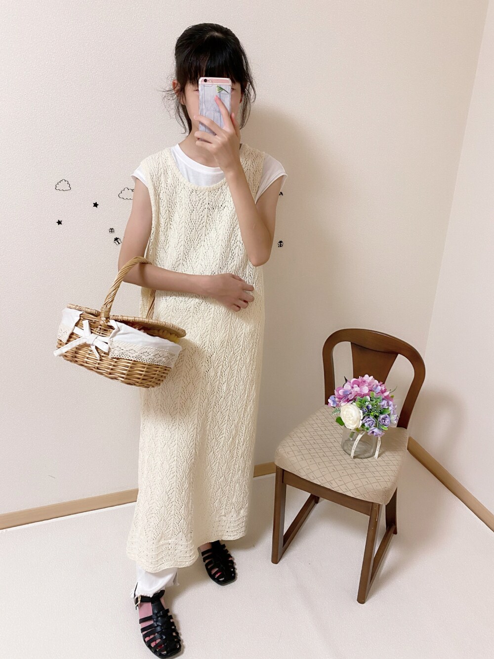 ko_ai_to🎶のサンダル「スクエアトゥ編みメッシュネックベルトフラットグルカサンダル」を使ったコーディネート