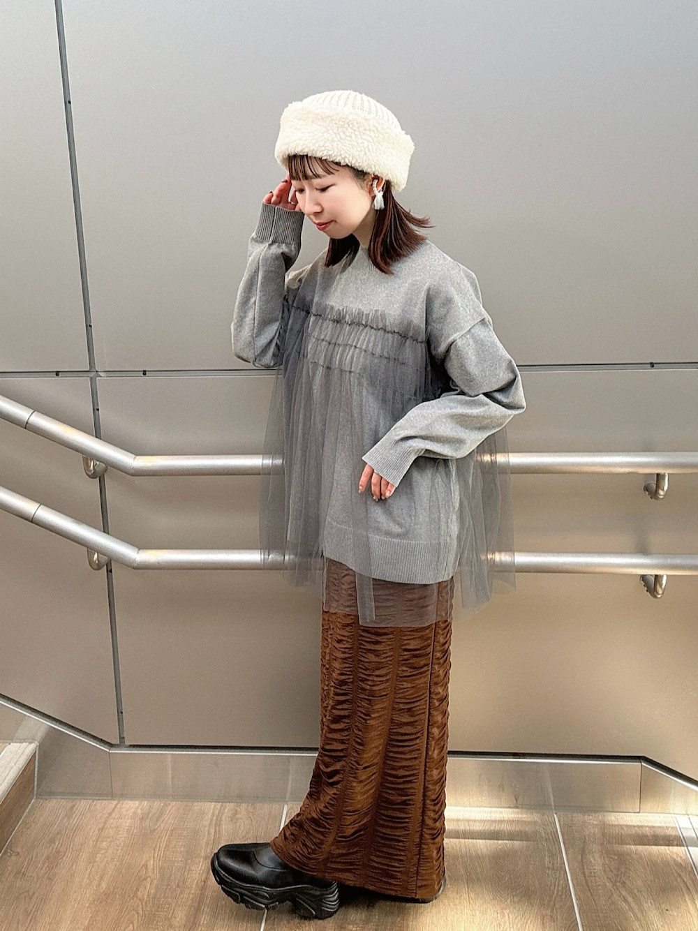 köasu のハット「OVERRIDE KNIT BOA CHAO TOQUE SGP / オーバーライド」を使ったコーディネート