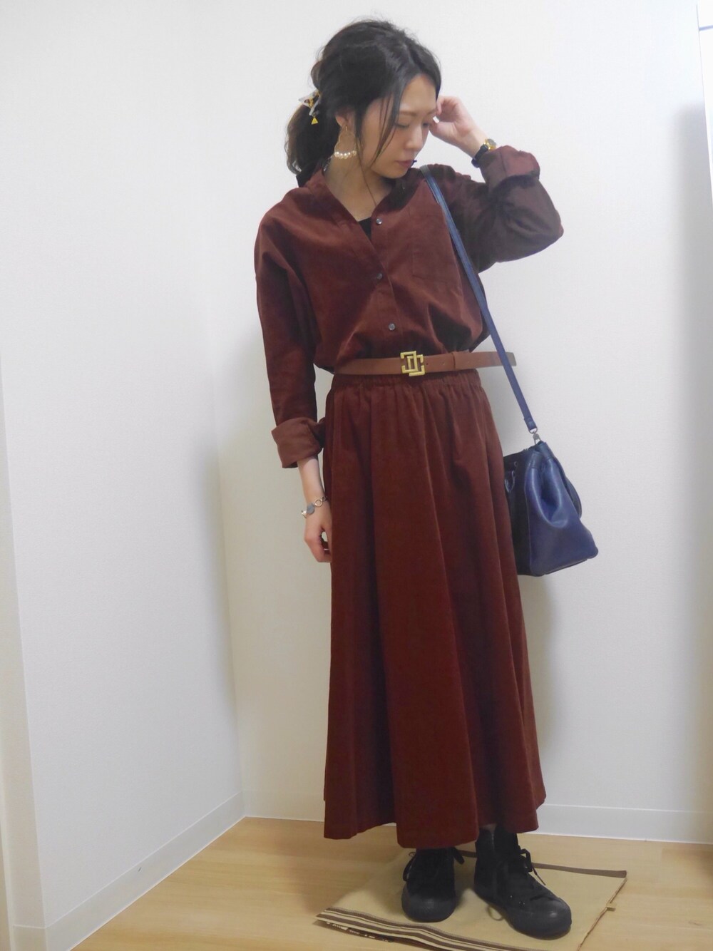 こあのワンピース「DOORS コーデュロイシャツワンピース」を使ったコーディネート