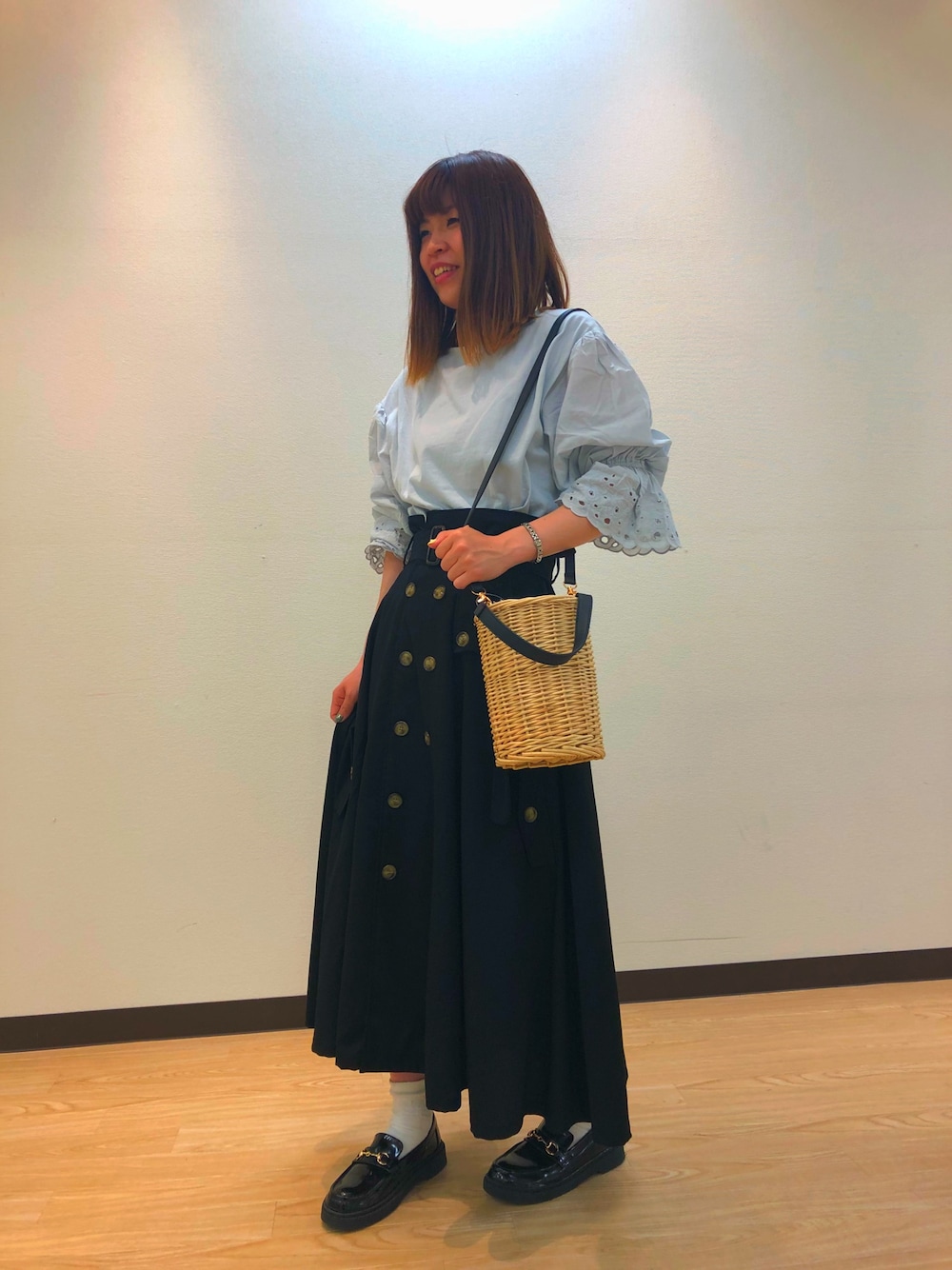 コバのかごバッグ「・ミニバスケットショルダーバッグ」を使ったコーディネート