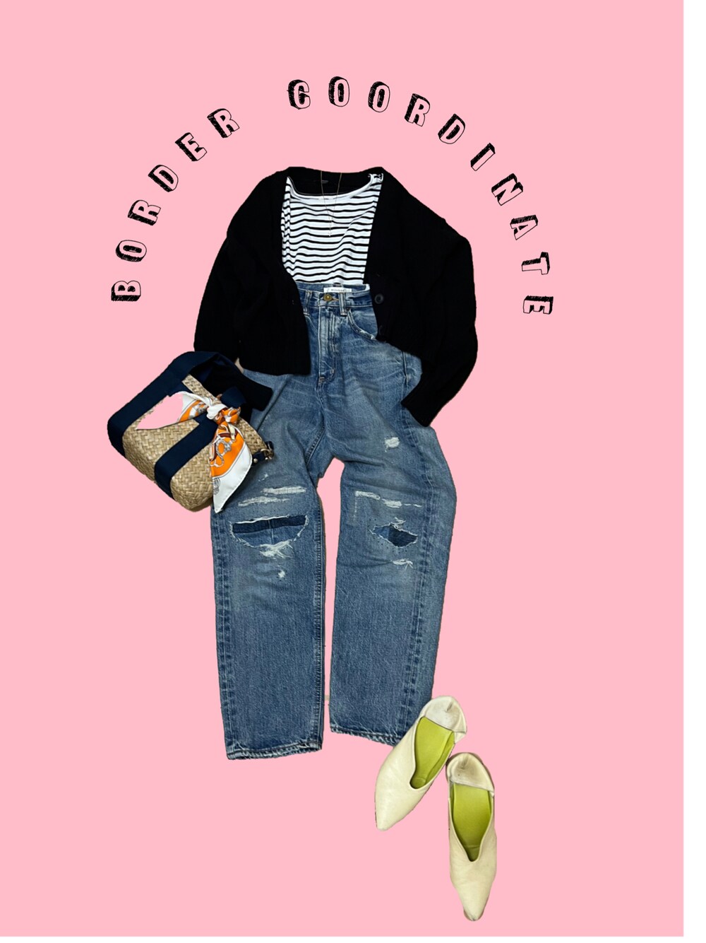 NOLU.(ノル)のTシャツ/カットソー「コットン100%ゆったりボーダーチュニックカットソーロンT」を使ったコーディネート