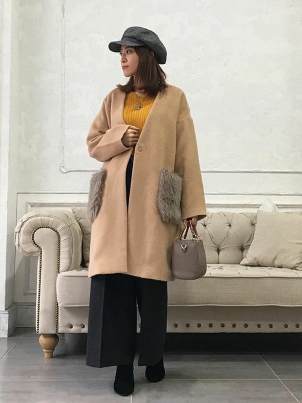 コートの色とインナーの色を同系色にしてすっきりと。 トレンドのポケットファーコートは着るだけで今年っぽい。 ポケットフェイクファーVネックコート [K688] 上品リブニットトップス [C2408] バンブーハンドルバッグ[B1110] 着用アイテムから飛べない商品&ZOZOTOWNで未販売の商品は、神戸レタスのサイト内で商品ID検索が出来ます♡