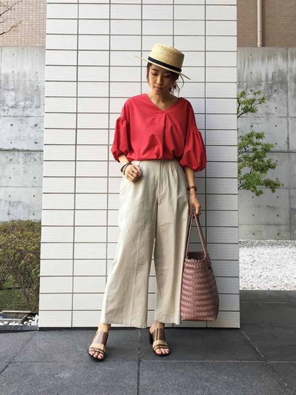 カジュアルになりがちなコットンワイドパンツも袖バルーンのトップスで大人っぽく。 バックウエストゴム☆前開きコットンボリュームスリーブVネックプルオーバーブラウス [C3176] ワイドパンツ [M2140] 天然素材★リボン付きシンプルストローハット [J590] 着用アイテムから飛べない商品&ZOZOTOWNで未販売の商品は、神戸レタスのサイト内で商品ID検索が出来ます♡