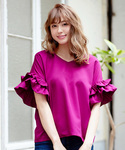 神戸レタス(KOBE LETTUCE本部)のシャツ/ブラウス「ボリュームフリル袖Vネックブラウス/レディーストップス/フレアスリーブ[C2791]神戸レタス」を使ったコーディネート
