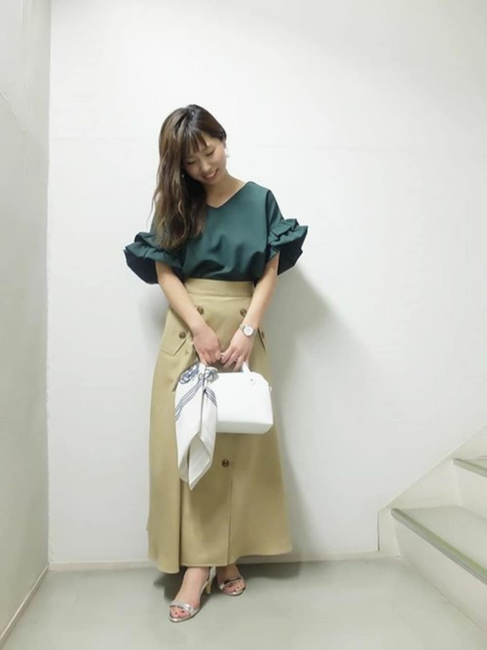 フリル袖のかわいいトップスとトレンチスカートで「旬顔スタイリング」☆彡足元は美脚になれる7cmヒールでとことんエレガントに...♪♪ ボリュームフリル袖ブラウス[C2791] バックウエストゴム☆マキシトレンチスカート [M2163] 選べる6柄★70cm★大判プリントスカーフ [J571] 2way調節可能ショルダー紐☆タッセルチャーム付きフェイクレザーボストンバッグ [B1148] アンクルストラップ付ヒールサンダル [I1529] 着用アイテムから飛べない商品&ZOZOTOWNで未販売の商品は、神戸レタスのサイト内で商品ID検索が出来ます♡