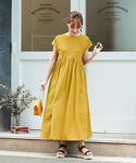 神戸レタス(KOBE LETTUCE本部)のワンピース「[フレンチスリーブ・ノースリーブ]前後2Wayリネンタッチマキシ丈ボリュームワンピース」を使ったコーディネート