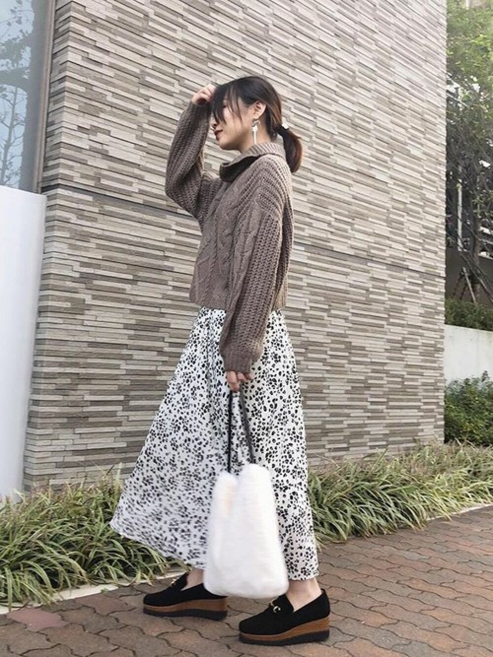 ホワイトベースのレオパ柄スカートは、こなれ感と大人っぽさが両方叶う♪丈感やシルエットが絶妙なのも◎ オフタートルボリュームケーブルニットトップス [C3197] フロントタック裏起毛マキシスカート [M2321] プラットフォームローファー [I1617] エコファー2wayショルダー [B1204] 着用アイテムから飛べない商品&ZOZOTOWNで未販売の商品は、神戸レタスのサイト内で商品ID検索が出来ます♡