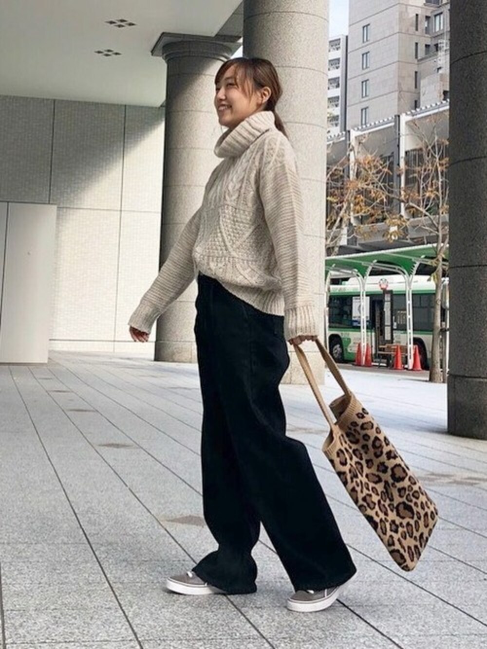 編み地切り替えが可愛いニットでおでかけコーデ♩レオパード柄のニットバッグはアクセントにもなって◎ 編地切替えケーブルニット [C3365] 裏起毛ワイドデニム [M2307] ローテクスニーカー [I1659] レオパード柄ニットトートバッグ [B1217] 着用アイテムから飛べない商品&ZOZOTOWNで未販売の商品は、神戸レタスのサイト内で商品ID検索が出来ます♡