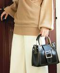 神戸レタス(KOBE LETTUCE本部)のハンドバッグ「ショルダーストラップ付き2Wayベルトメタルハンドルクラシカルバッグ」を使ったコーディネート