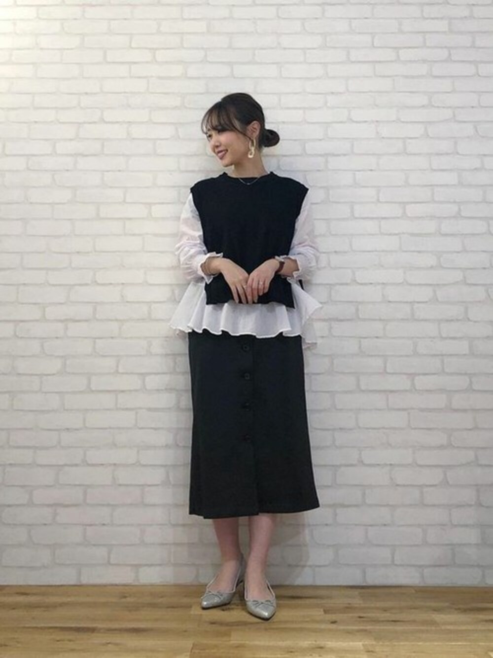 レイヤードのモノトーンコーデがお洒落なスタイリング♪ ニットベストレイヤード風シャツ [C3600] ポンチVネックジャンスカ [E1978] 2TYPEフラットバレエ [I1739] 着用アイテムから飛べない商品&ZOZOTOWNで未販売の商品は、神戸レタスのサイト内で商品ID検索が出来ます♡