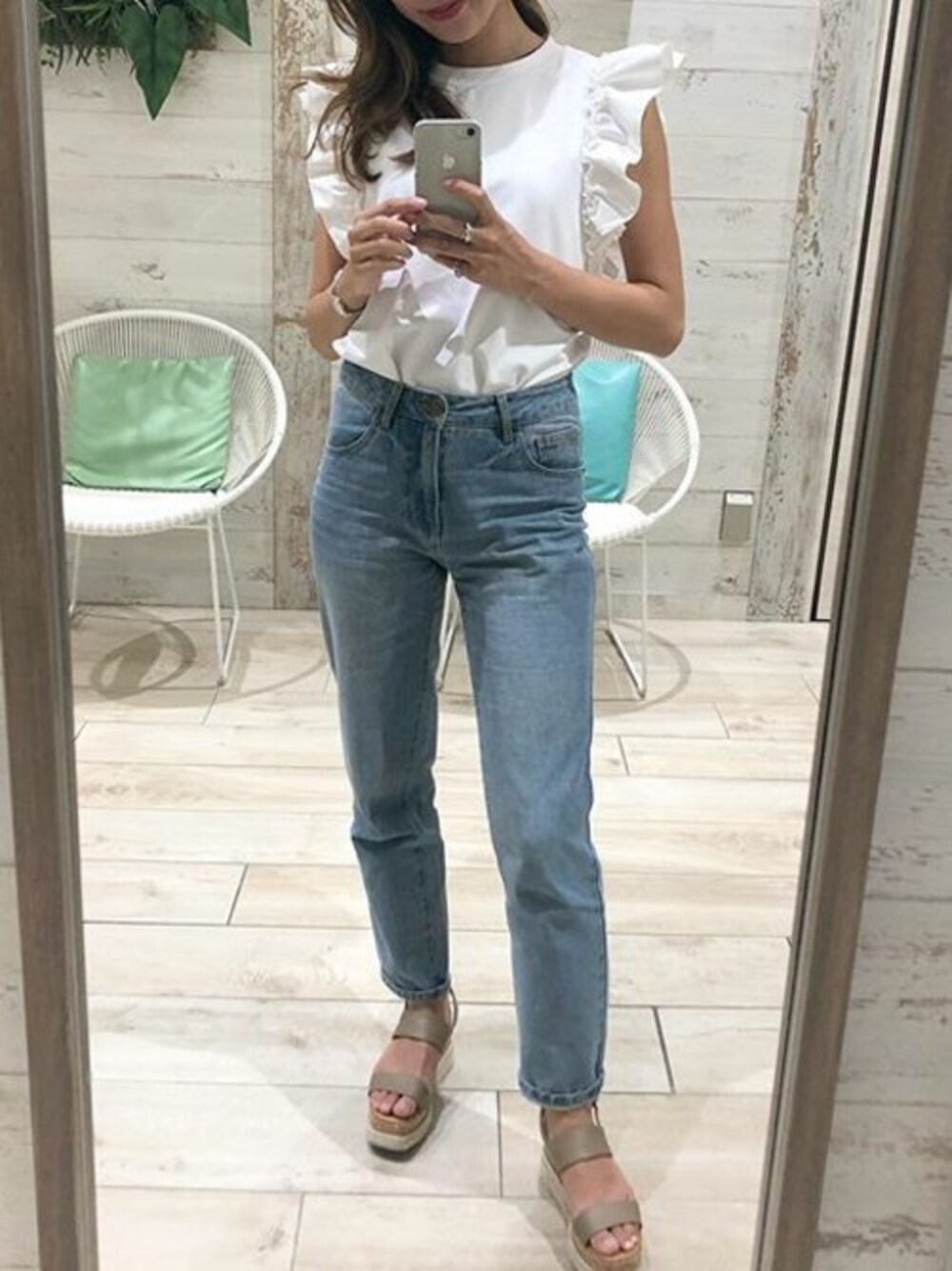 フリルのトップスはデニムとの相性抜群! ショルダーフリルトップス [C3926] [ダメージ/ノーマル]ハイウエストテーパードデニム [M2086] 2ベルト異素材ウェッジサンダル [I1598] 着用アイテムから飛べない商品&ZOZOTOWNで未販売の商品は、神戸レタスのサイト内で商品ID検索が出来ます♡