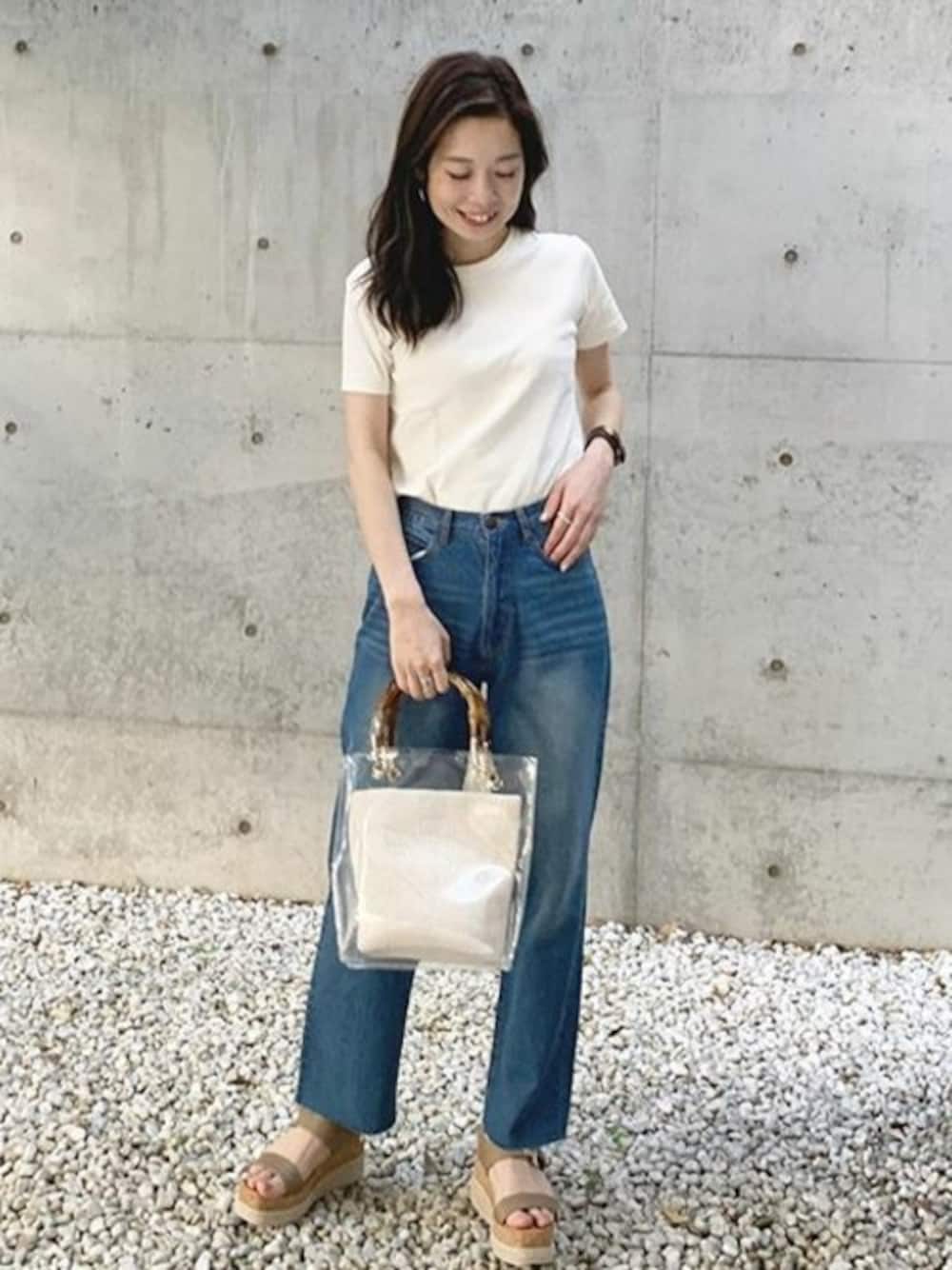 シンプルな白T×デニムコーデ♪トレンド感あるクリアバッグがポイント♡ シンプルTシャツ [C3909] 裾きりっぱなしハイライズデニム [M2421] ペーパーポーチ付きクリアバッグ [B1245] 2ベルト異素材ウェッジサンダル [I1598] 着用アイテムから飛べない商品&ZOZOTOWNで未販売の商品は、神戸レタスのサイト内で商品ID検索が出来ます♡