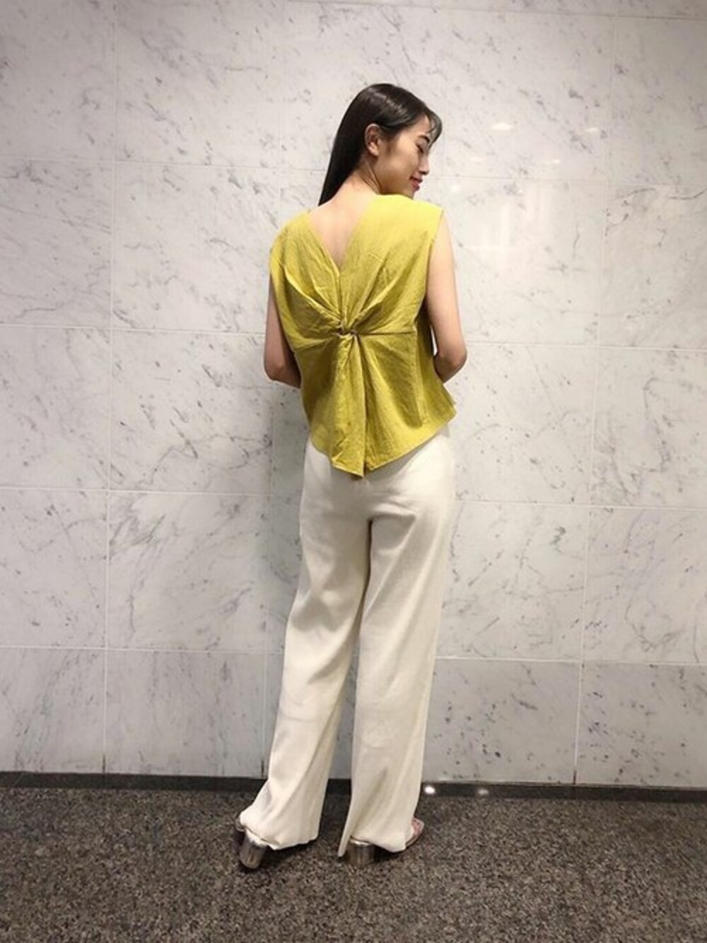神戸レタス(KOBE LETTUCE本部)のシャツ/ブラウス「バックオープンねじりノースリーブトップス【セットアップOK】」を使ったコーディネート