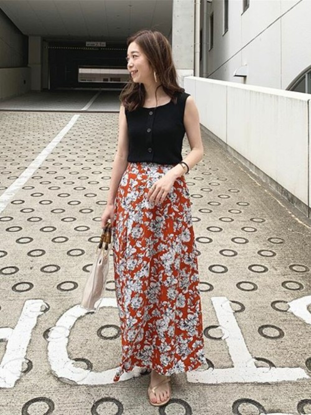 神戸レタス(KOBE LETTUCE本部)のスカート「花柄マキシ丈フレアスカート」を使ったコーディネート