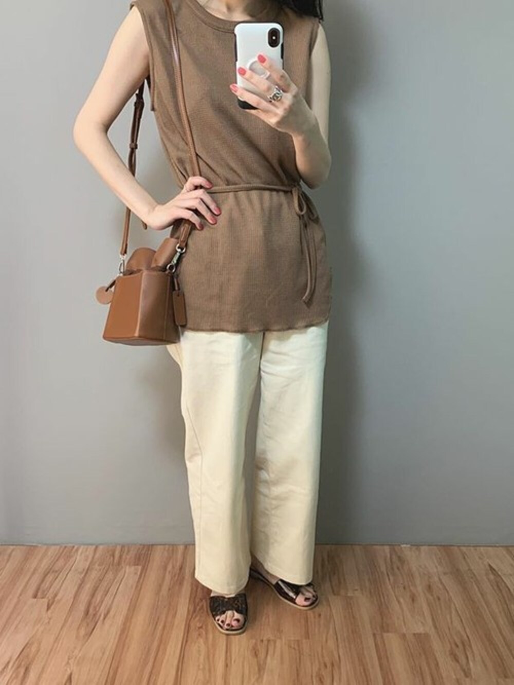 ウエストマークできる紐つきサーマルは丈感も着心地も◎ブラウン系でまとめたコーデ♪ サーマルベルト付きノースリトップス [C3938] ストレートカラーデニム [M2524] 巾着バッグ [B1288] スクエアベルトフラットサンダル [I1836] 着用アイテムから飛べない商品&ZOZOTOWNで未販売の商品は、神戸レタスのサイト内で商品ID検索が出来ます♡