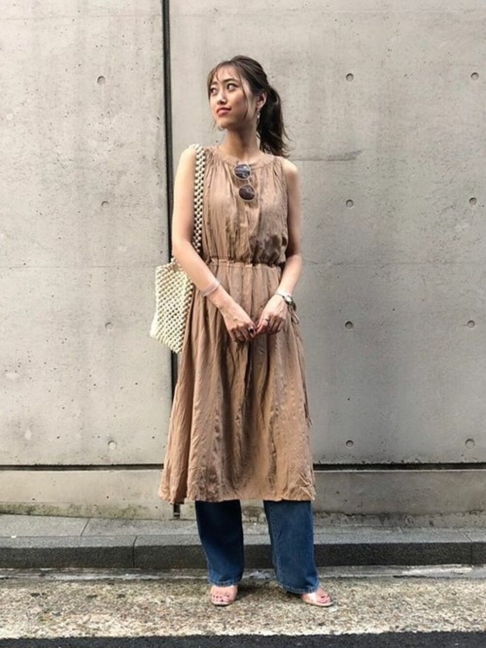 今年らしいワッシャー素材を使用したワンピースのコーディネート。シワ感がナチュラルな印象に◎ ノースリワッシャーワンピース [E2121] 着用アイテムから飛べない商品&ZOZOTOWNで未販売の商品は、神戸レタスのサイト内で商品ID検索が出来ます♡