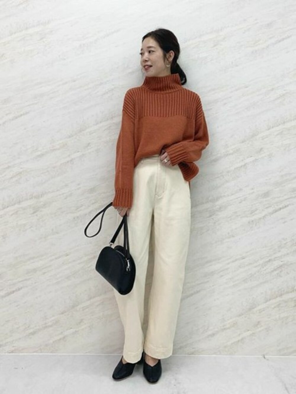 この冬オススメなカラーニットコーデ♪ 編地切り替えハイネックニット [C4190] 裏起毛カーブパンツ [M2639] 半円形バッグ [B1253] 着用アイテムから飛べない商品&ZOZOTOWNで未販売の商品は、神戸レタスのサイト内で商品ID検索が出来ます♡