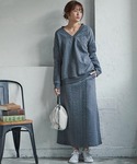 神戸レタス(KOBE LETTUCE本部)のTシャツ/カットソー「ケーブル柄カットソーキーネックチュニックトップス【セットアップOK】」を使ったコーディネート