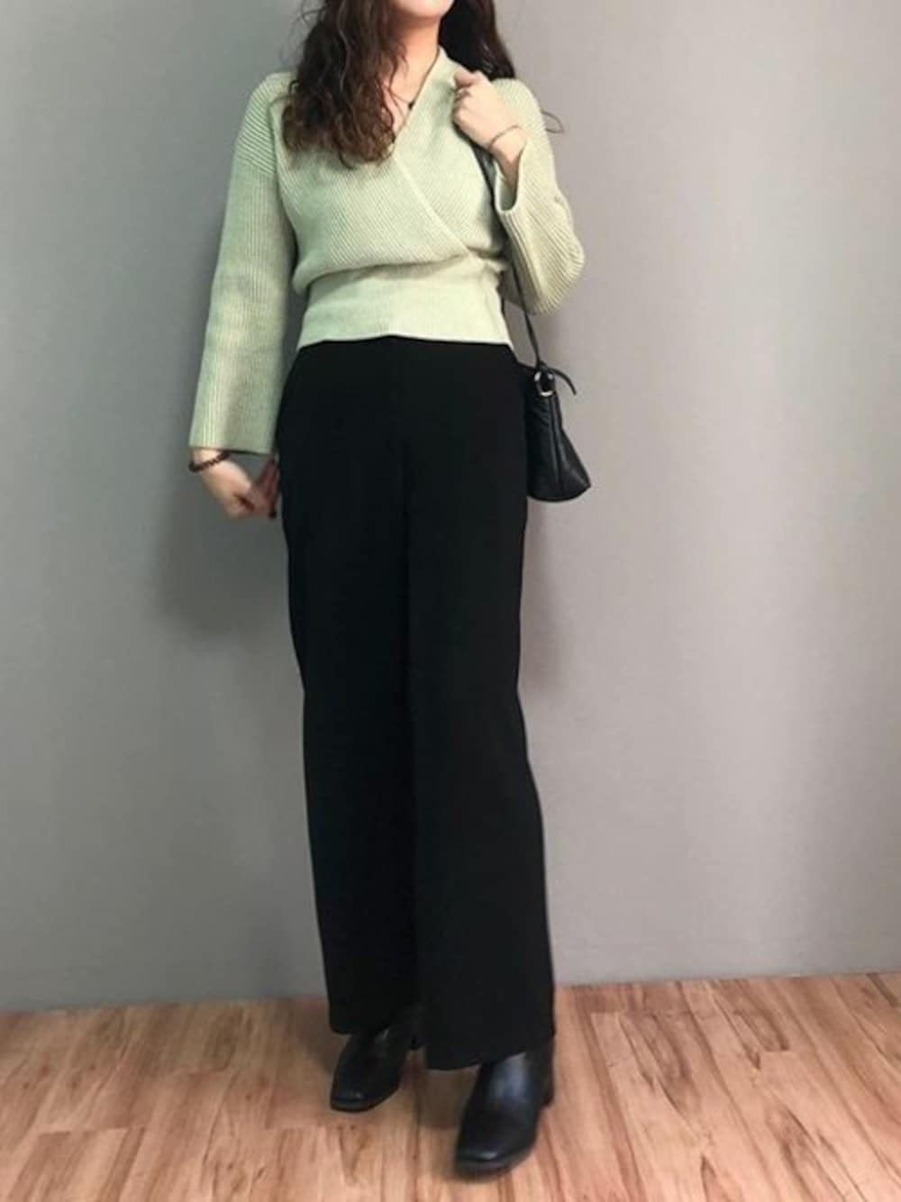 神戸レタス(KOBE LETTUCE本部)のニット/セーター「カシュクールもっちりリブニットトップス」を使ったコーディネート