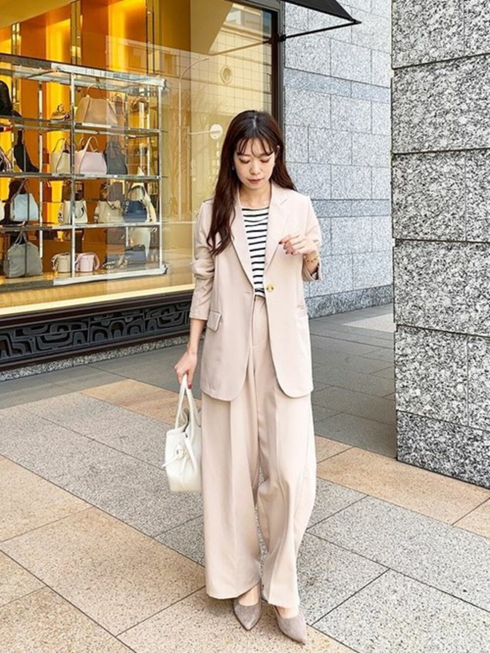 今年の春もセットアップでおしゃれに!1着もってると着回しの効くアイテムです♡ とろみ素材テーラードゆるジャケット [K840] とろみ素材ベルト付ワイドパンツ [M2570] 着用アイテムから飛べない商品&ZOZOTOWNで未販売の商品は、神戸レタスのサイト内で商品ID検索が出来ます♡