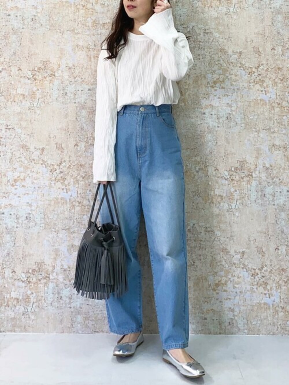 一枚でオシャレになれるクリンクルブラウスがお気に入り♡ クリンクルブラウス [C4596] フリンジラウンドバッグ [B1345] スクエアトゥバレエパンプス [I1918] 着用アイテムから飛べない商品&ZOZOTOWNで未販売の商品は、神戸レタスのサイト内で商品ID検索が出来ます♡