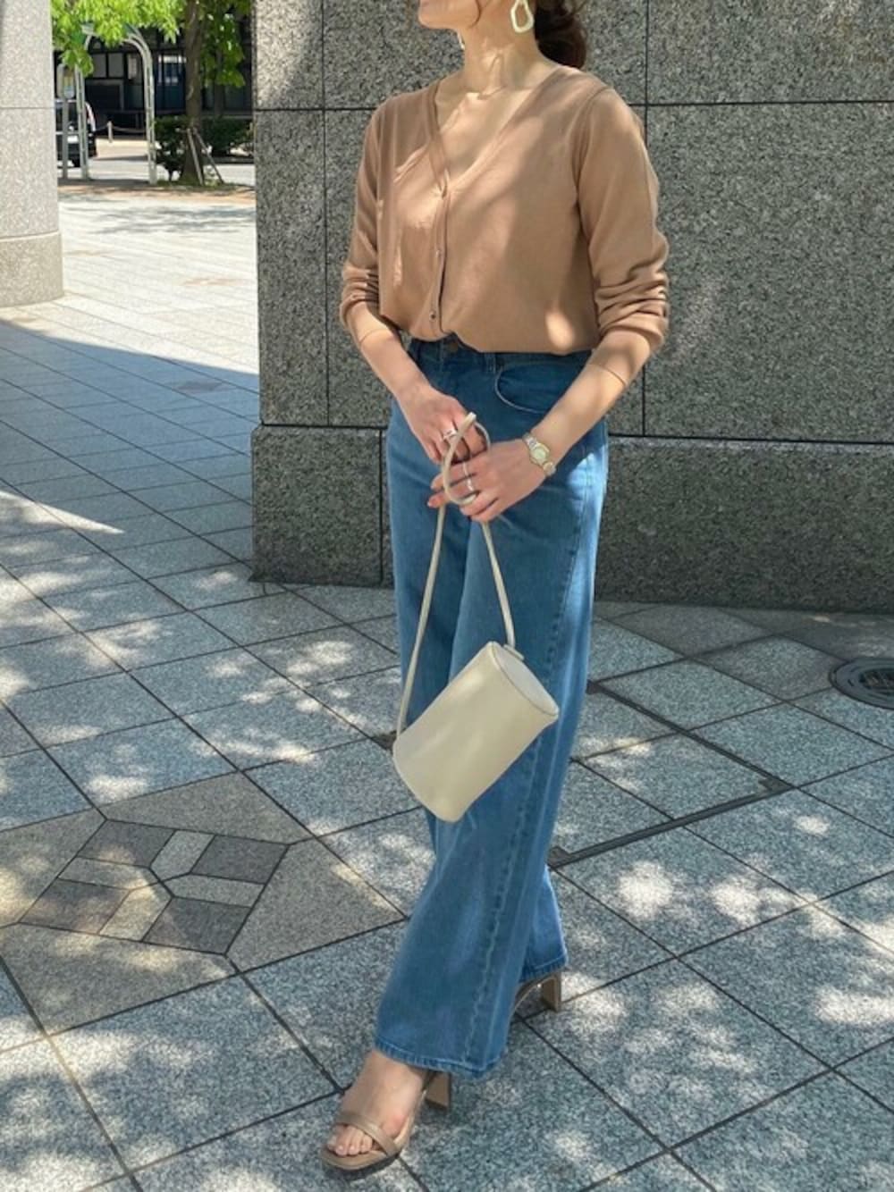 カーデのボタンを閉めてトップス使い♪ ベージュは春から秋まで着回せるので便利! [UVカット]サマーカーディガン [C4653] ハイウエストストレートワイドデニムパンツ [M2084] スリムヒールサンダル [I2099] 着用アイテムから飛べない商品&ZOZOTOWNで未販売の商品は、神戸レタスのサイト内で商品ID検索が出来ます♡
