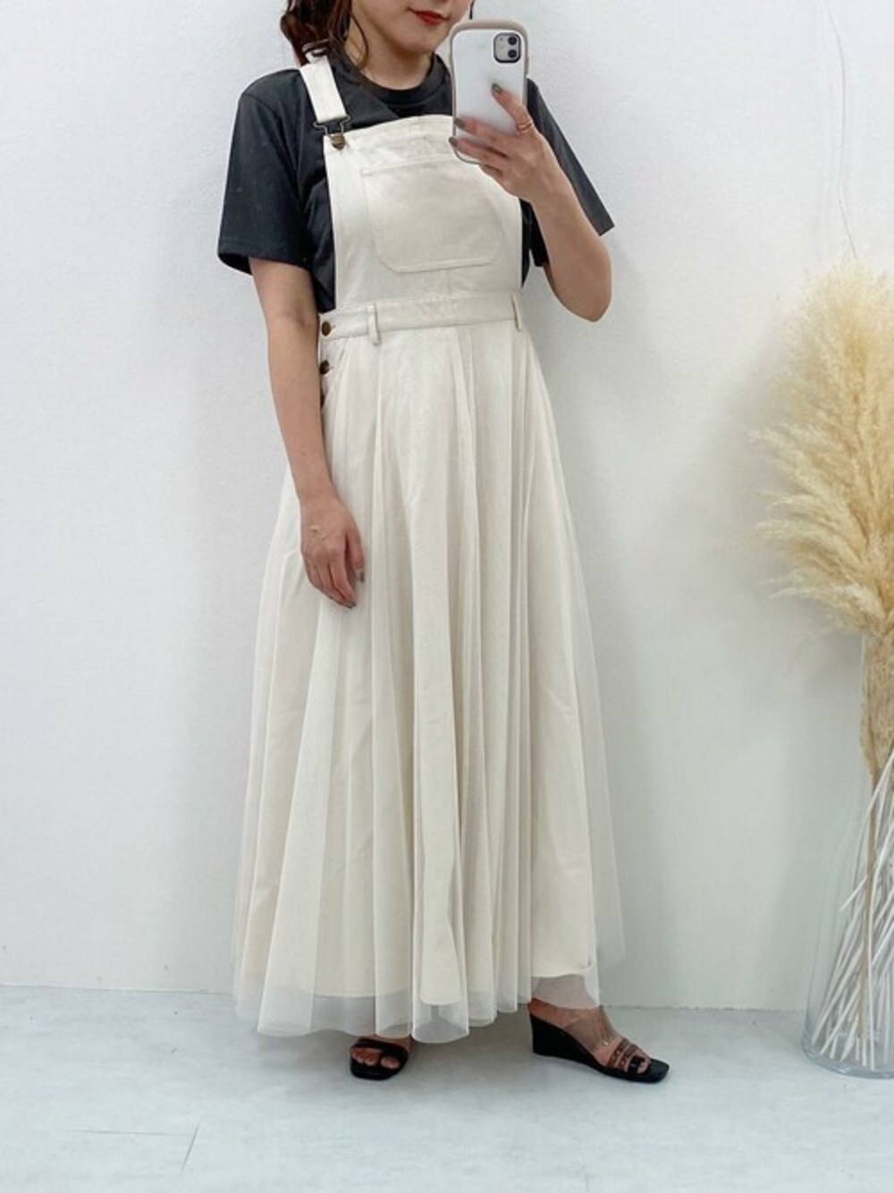 神戸レタス(KOBE LETTUCE本部)のワンピース「チュールドッキングデニムフレアジャンスカワンピース」を使ったコーディネート