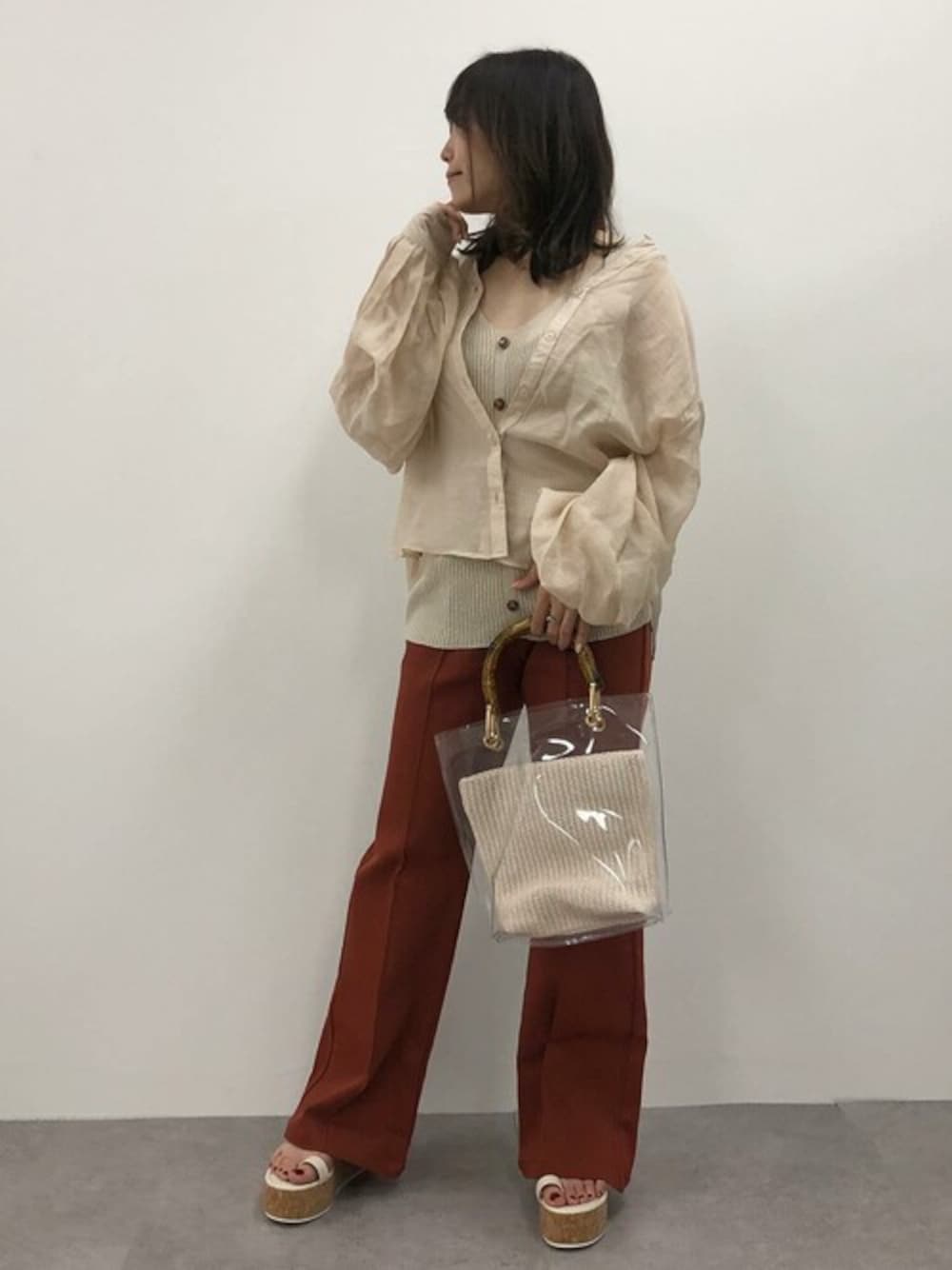 脚長効果◎のパンツと今年っぽいカラーのシャツ&ノースリトップスで♪ センターボタンリブニットトップス [C4487] 【ももちゃんコラボ】のびのびセンターラインフレアパンツ [M2900] サムループウェッジサンダル [I2134] ペーパーポーチ付きクリアバッグ [B1245] 着用アイテムから飛べない商品&ZOZOTOWNで未販売の商品は、神戸レタスのサイト内で商品ID検索が出来ます♡