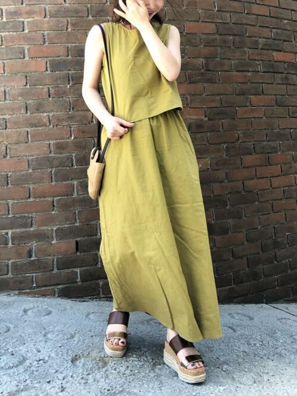 神戸レタス(KOBE LETTUCE本部)のワンピース「前後2wayセットアップ風リネンブレンドワンピース」を使ったコーディネート