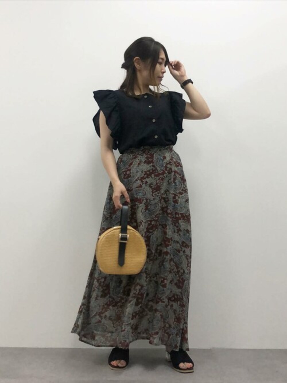 袖フリルでお洒落に二の腕カバー◎中々かぶらないペイズリースカート合わせで♪ スクエアネックフリルブラウス [C4830] ペイズリーフレアスカート [M2991] ラウンドかごバッグ [B1367] クリアヒールワンベルトサンダル [I2088] 着用アイテムから飛べない商品&ZOZOTOWNで未販売の商品は、神戸レタスのサイト内で商品ID検索が出来ます♡