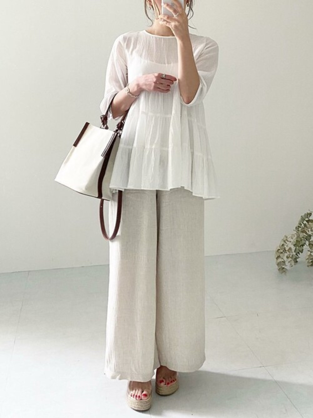 淡いトーンでまとめた夏のリラックスコーデ♡ [ 田中亜希子さんコラボ ]インド綿ティアードチュニック&ワンピース [E2325] [ てらさんコラボ ]リネンイージーパンツ [M2873] ジュートサボ [I2082] 着用アイテムから飛べない商品&ZOZOTOWNで未販売の商品は、神戸レタスのサイト内で商品ID検索が出来ます♡