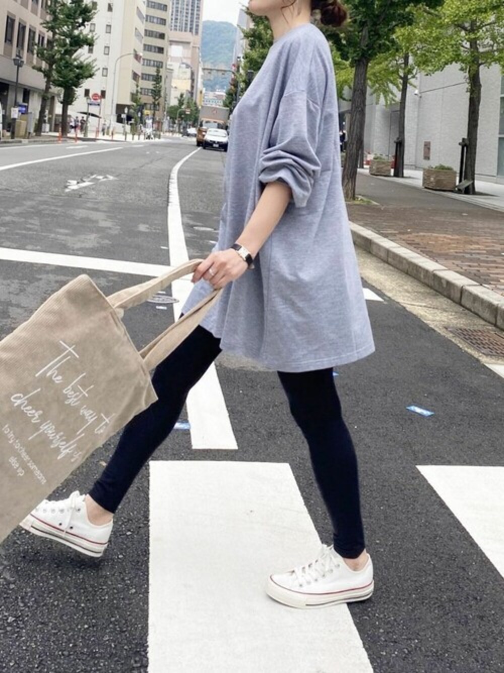 おうち時間におすすめのコーデ。レギンスを合わせると、トップスのフレア感が際立ちます♡ ビッグシルエットスウェットトップス [C4926] [ &HEAT ]選べる着丈★6分or9分丈レギンス[H538] グラフィックロゴコーデュロイトートバッグ [B1372] [ コンバース ]CANVAS ALLSTAR OX オールスターローカット [I1665] 着用アイテムから飛べない商品&ZOZOTOWNで未販売の商品は、神戸レタスのサイト内で商品ID検索が出来ます♡
