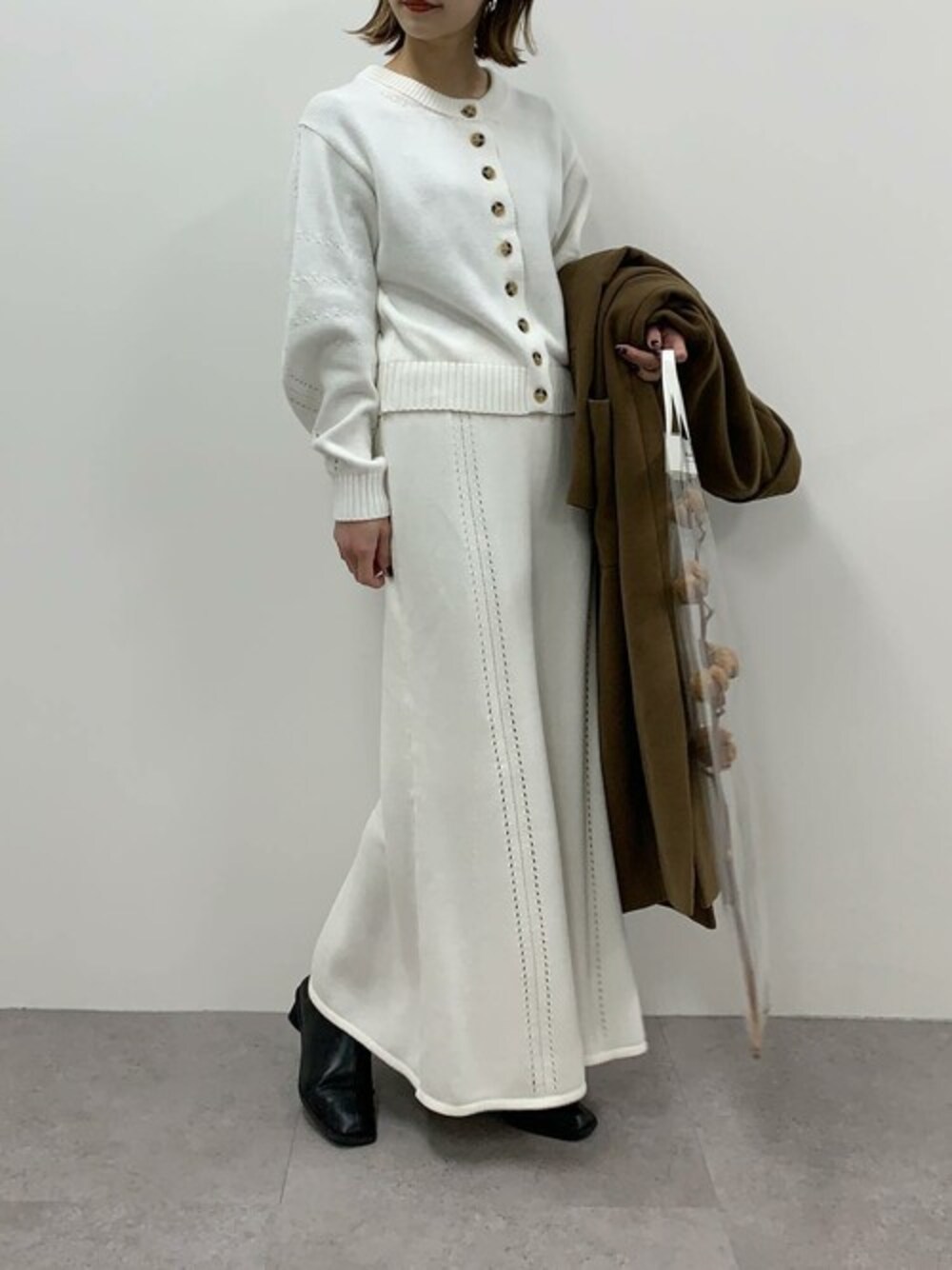 セットアップでワントーンコーデ♡ コクーンスリーブカーディガン [C5118] マーメイドニットスカート [M3163] トライアングルヒールストレッチブーツ [I2177] 着用アイテムから飛べない商品&ZOZOTOWNで未販売の商品は、神戸レタスのサイト内で商品ID検索が出来ます♡