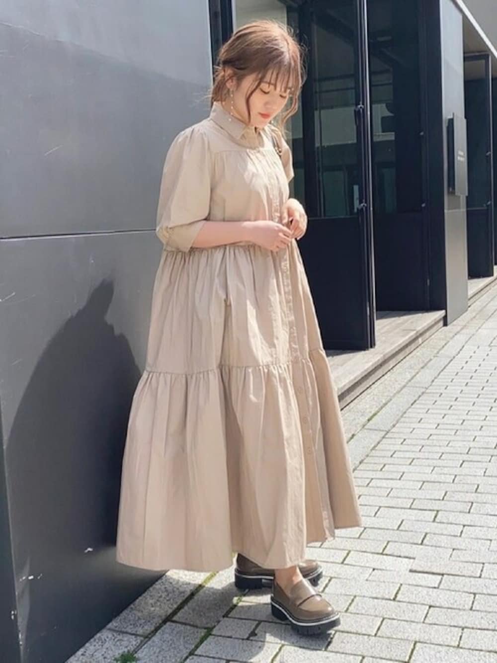 神戸レタス(KOBE LETTUCE本部)のワンピース「選べる2丈ティアードシャツワンピース」を使ったコーディネート