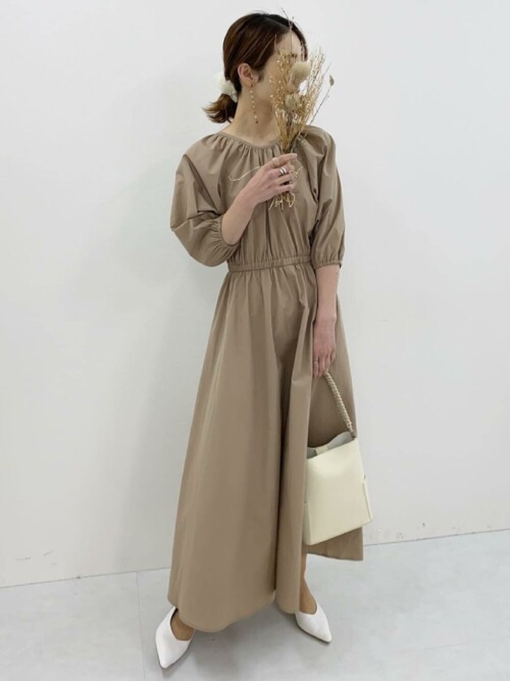 ベージュのワンピースで綺麗めコーディネート バックオープンワンピース [E2740] ロープベルトバッグ [B1393] センターステッチパンプス [I2271] 着用アイテムから飛べない商品&ZOZOTOWNで未販売の商品は、神戸レタスのサイト内で商品ID検索が出来ます♡