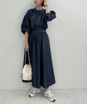 神戸レタス(KOBE LETTUCE本部)のシャツ/ブラウス「ステッチデニムボリュームスリーブブラウス」を使ったコーディネート