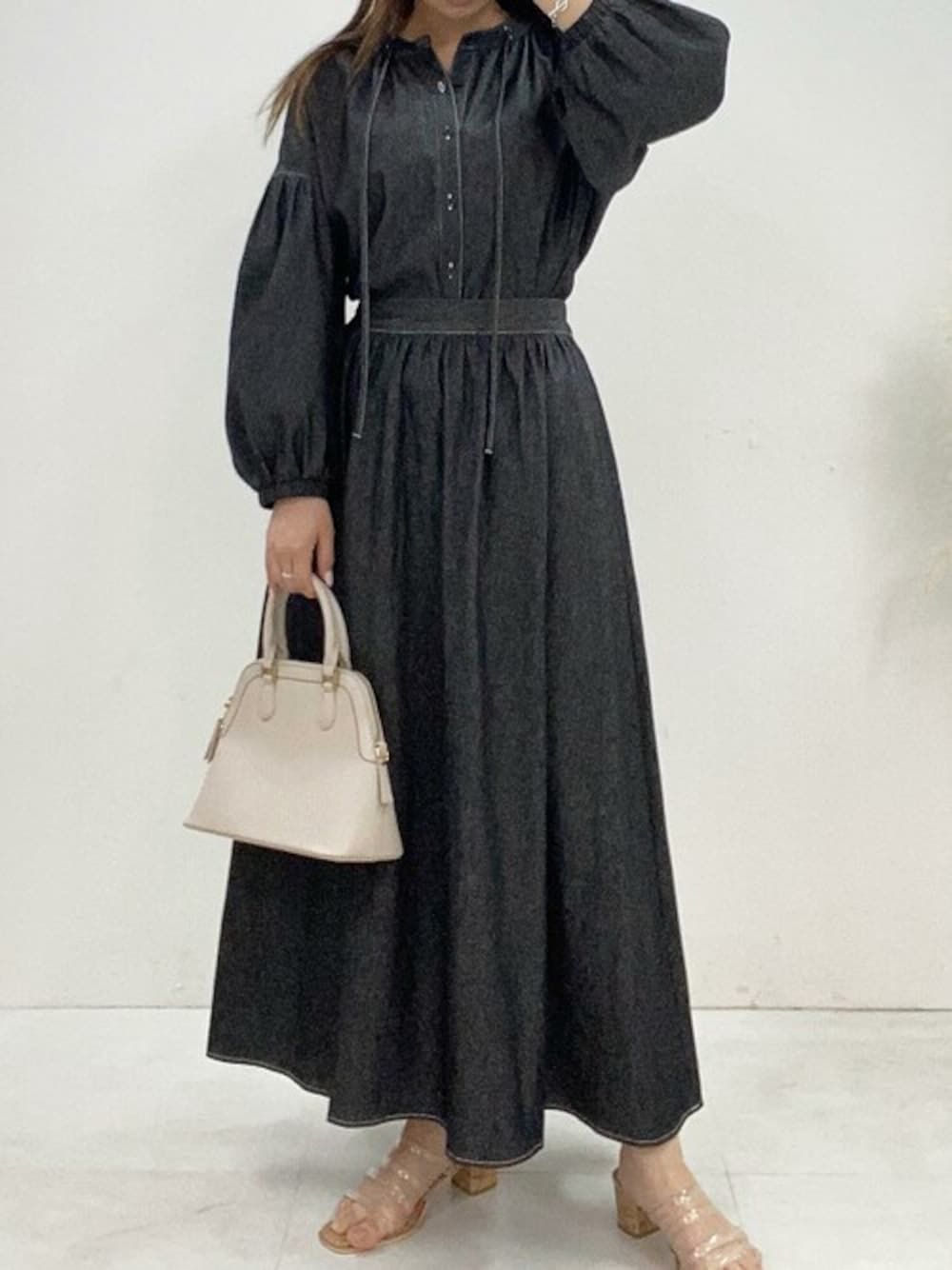 デニムセットアップのトレンドコーデ 足元のクリアサンダルで夏らしい軽やかな印象に♪ ステッチデニムボリュームスリーブブラウス [C6195] ステッチデニムフレアスカート [M3682] 2wayステッチブガッティバッグ [B1461] クリアチューブベルトサンダル [I2084] 着用アイテムから飛べない商品&ZOZOTOWNで未販売の商品は、神戸レタスのサイト内で商品ID検索が出来ます♡