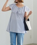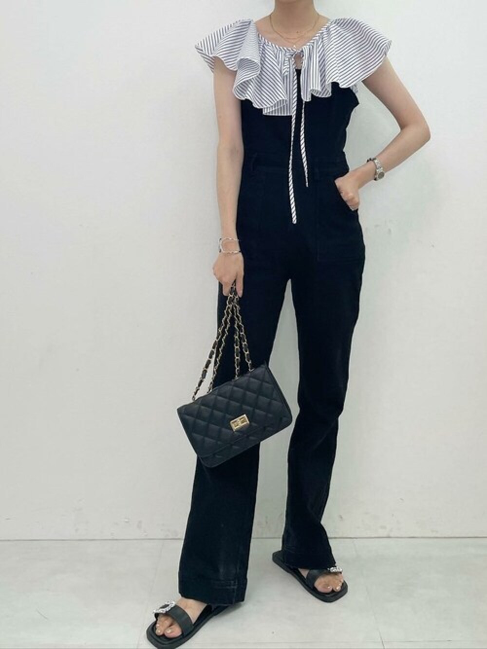 可愛いブラウスをオーバーオールでカジュアルダウンしたコーディネート。 フリル襟ノースリーブブラウス [C6265] 着用アイテムから飛べない商品&ZOZOTOWNで未販売の商品は、神戸レタスのサイト内で商品ID検索が出来ます♡